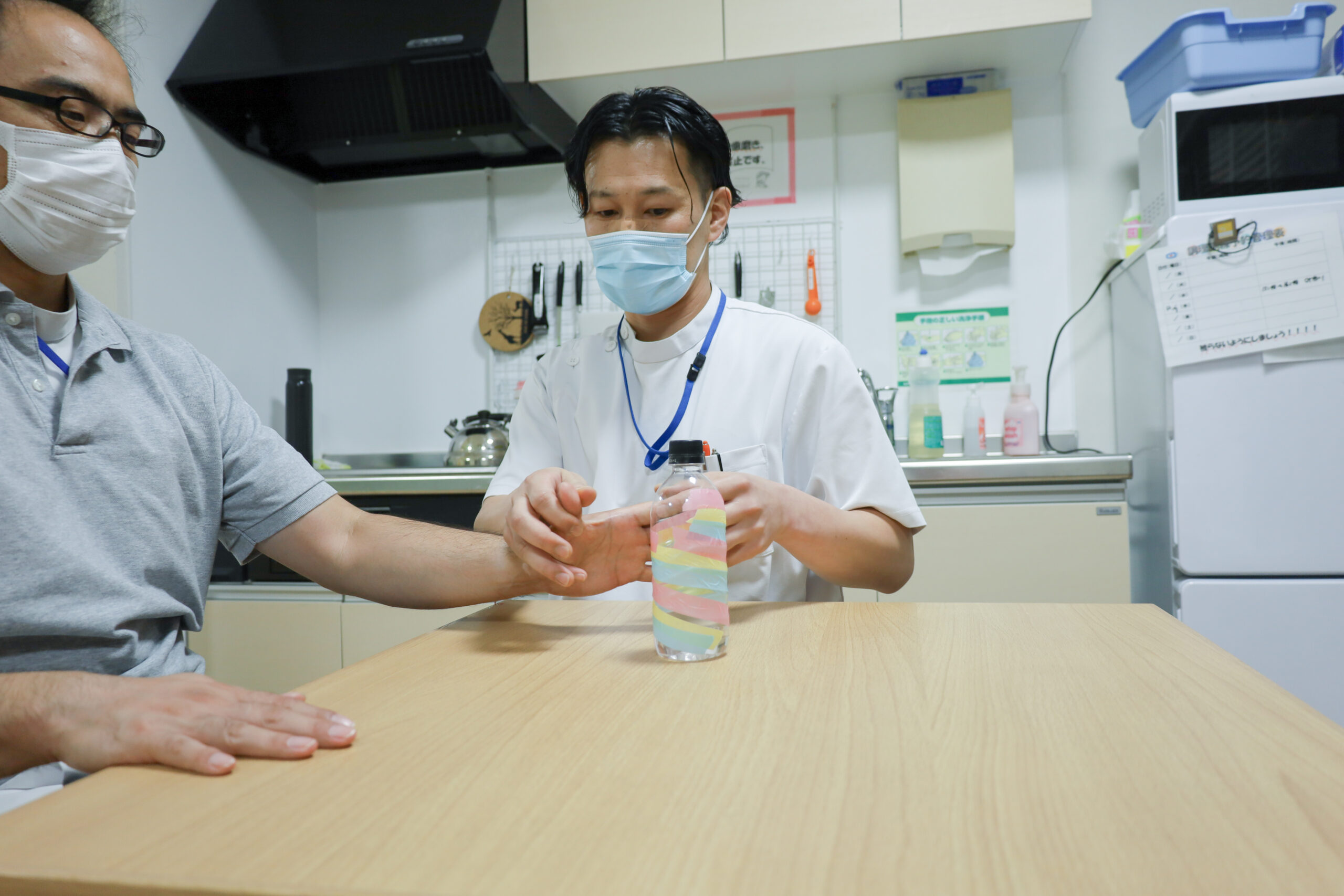 主に脳卒中における片麻痺患者の上肢と手指の運動機能を再獲得するリハビリを得意としています。スプリント製作の講習会に参加し、リハビリ中に患者さんの装具を製作できるよう特訓しています。