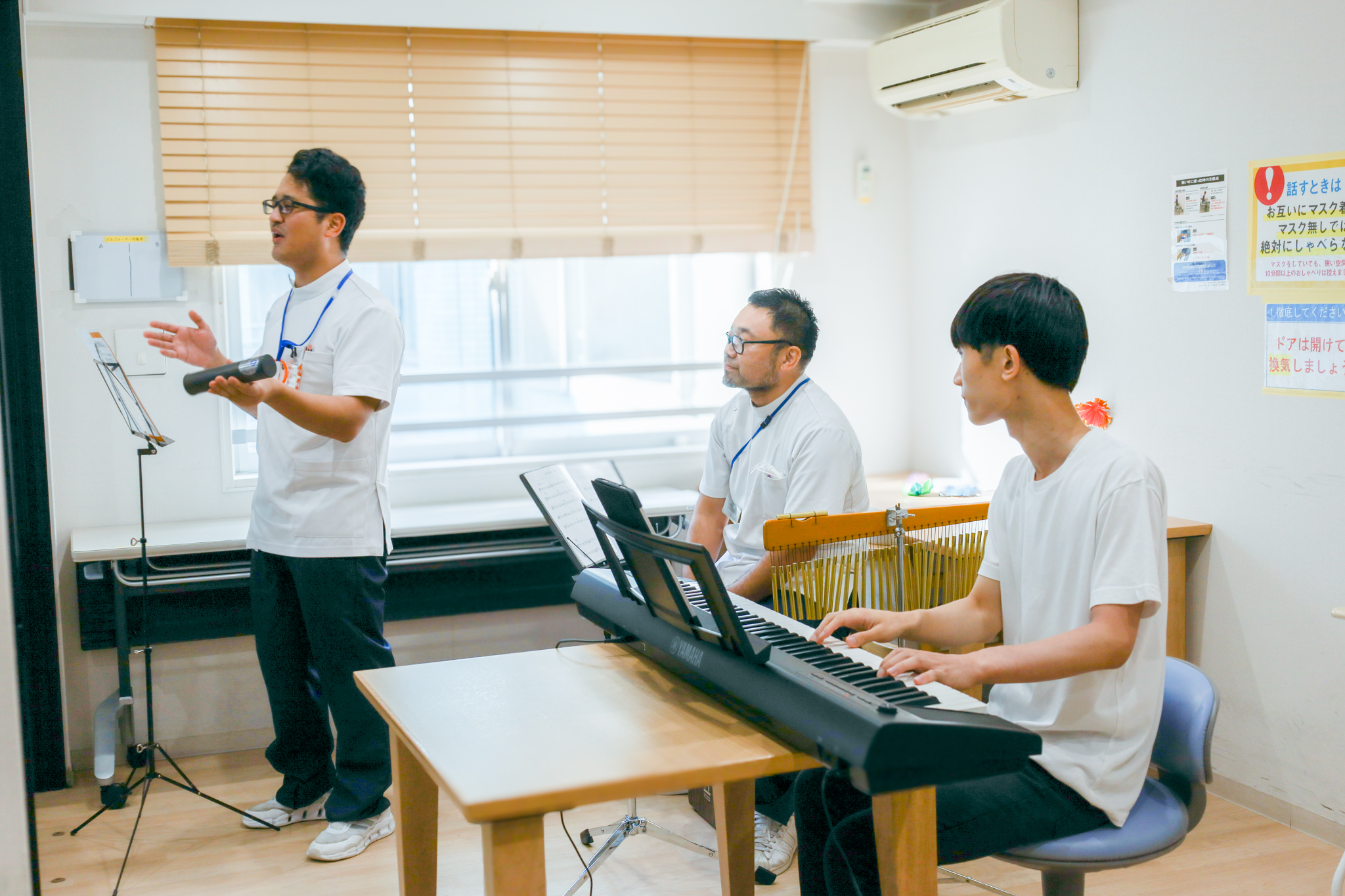 先日、当院職員による「みんなで作る音楽会!」を患者さま向けに開催いたしました。各病棟(3~5階)の患者食堂を会場とし、職員が訪問して演奏をお届けする形で、入院生活のひとときを音楽とともに楽しんでいただきました。