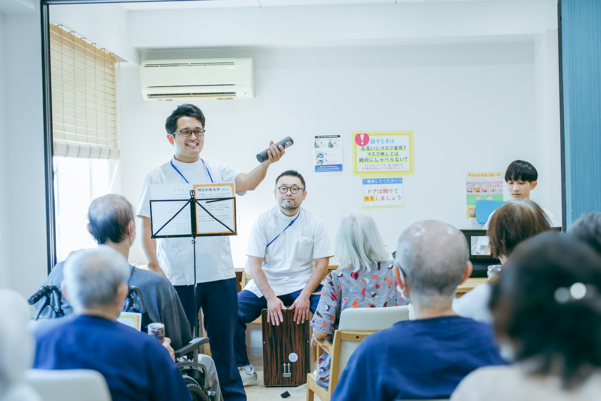 普段の病棟生活ではなかなか触れる機会の少ない音楽を、患者さまご自身が「歌う・手を叩く・リズムに乗る」ことで参加していただけるよう工夫した音楽会です。主体的に関わっていただくことで活動性や一体感が生まれ、リフレッシュやストレス軽減につながることを目指しています。