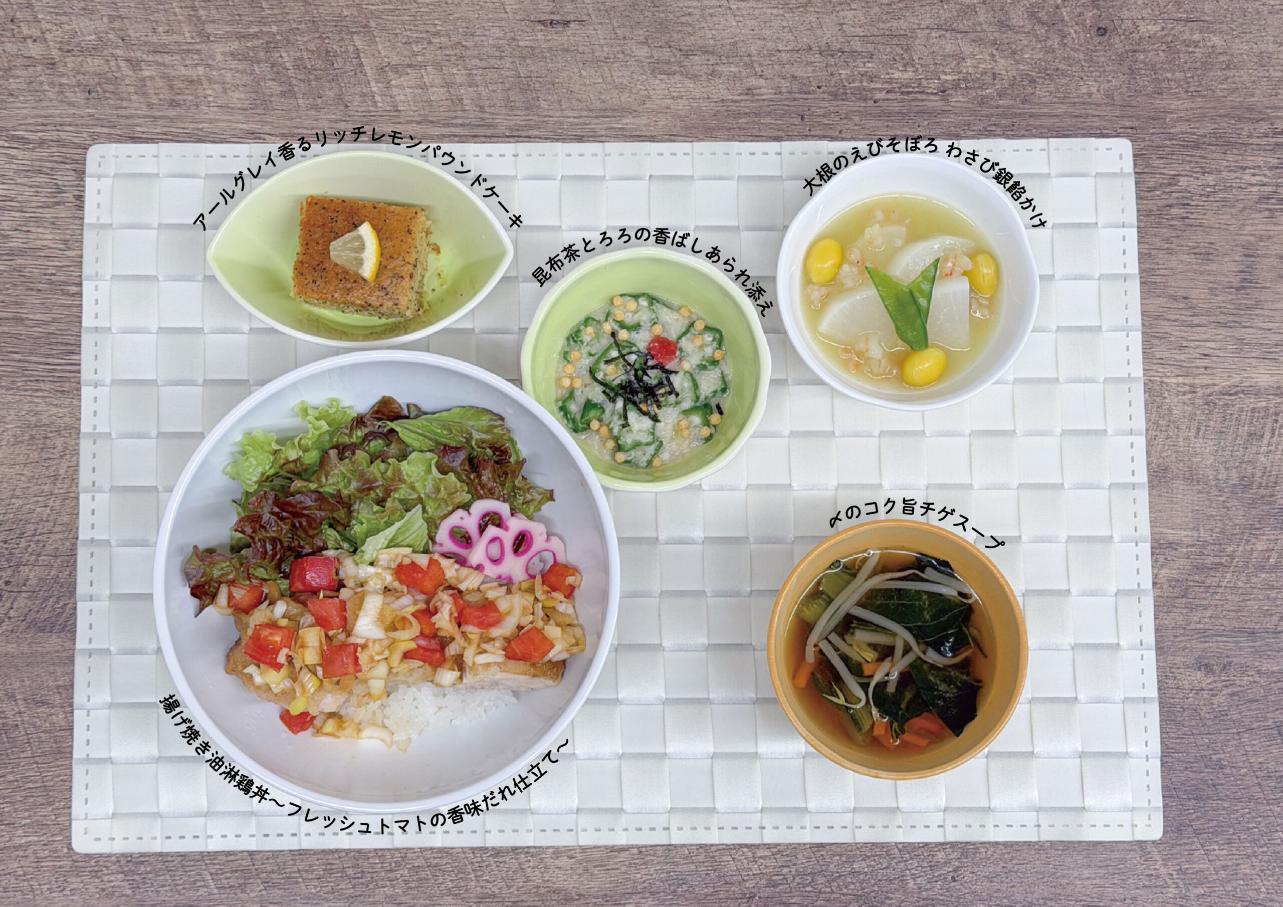 メインは認知症をはじめとした、味覚や嗅覚障害のある患者さんでも美味しいと感じられる、「甘味+酸味」のタレを使った油淋鶏丼です。