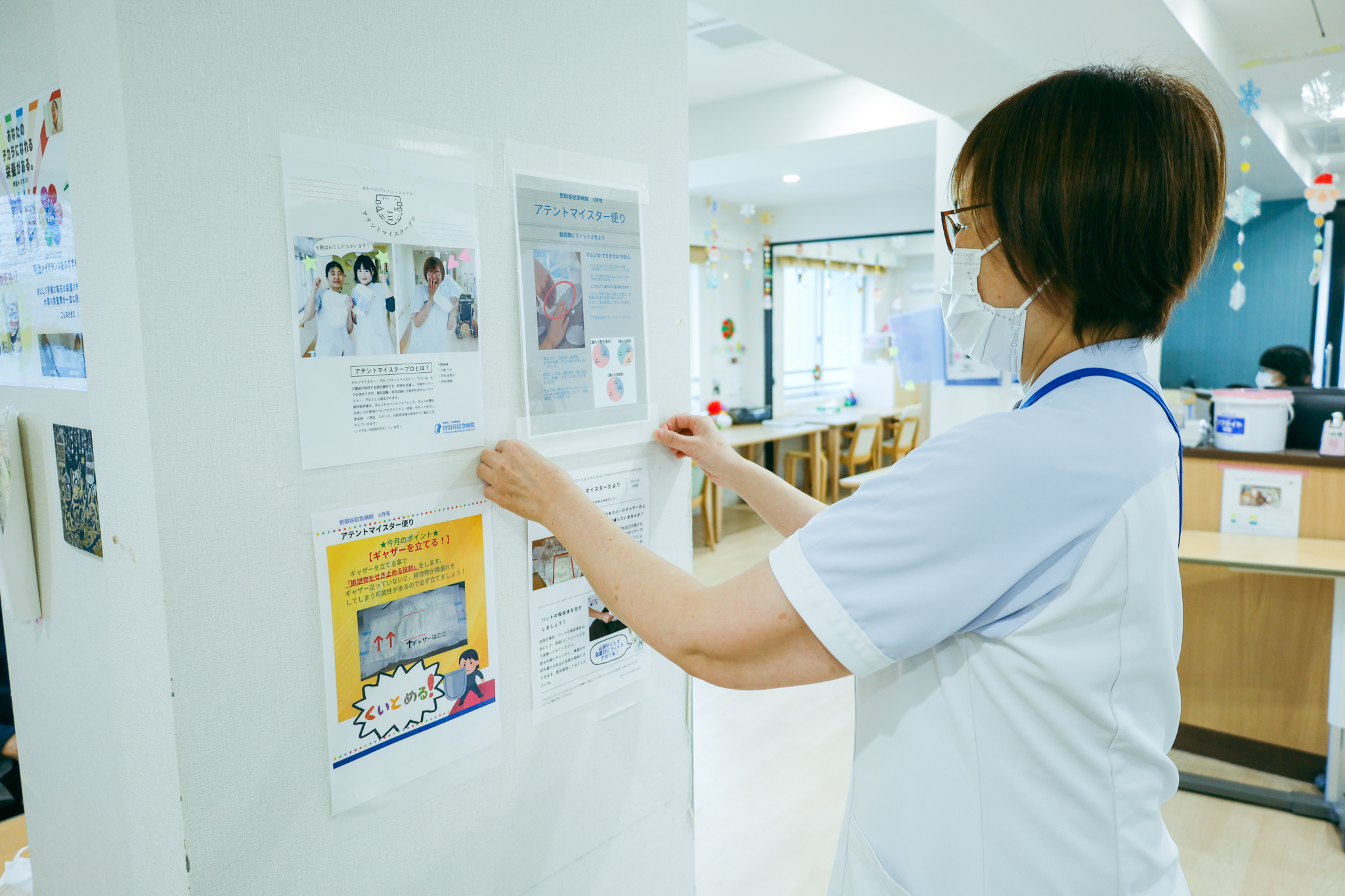 また、アテントマイスターとして入院中の患者様へのおむつやリハビリパンツの選定、スタッフからは、排泄に関する困りごとの相談などに対応しています。さらにアテントマイスターだよりも発行しています。